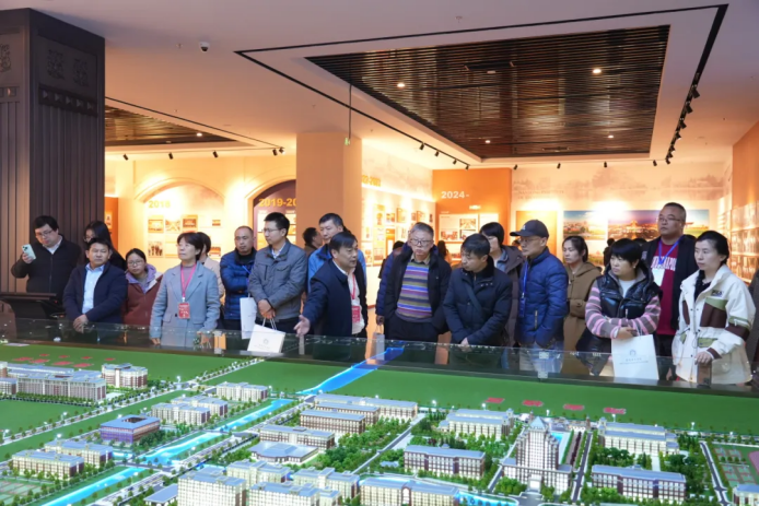 会后,美狮贵宾会科技集团董事长张福德、总经理唐佩随队和与会人员一起参观了南通理工学院的数智展馆、张謇教育文化馆等地并合影留念。